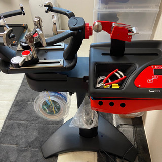 使用する機材はゴーセンのオフィシャルストリンガーです。今日も元気に稼働中。